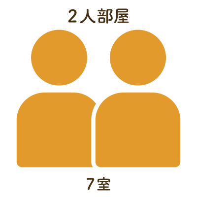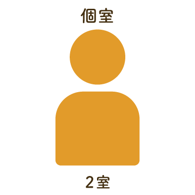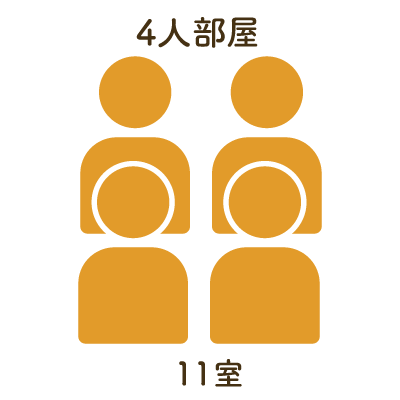 多床室はプライバシーに配慮し、パーテーション等で仕切られています。個室:2室、2人部屋:7室、 4人部屋:11室ご用意しております。